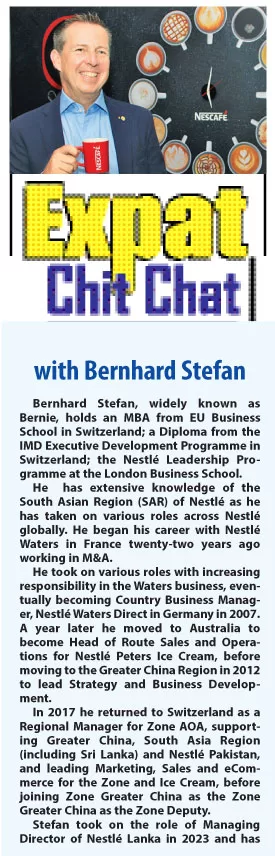 Following is a Q&A with Managing Director of Nestlé Lanka, Bernie Stefan in our EXPAT Chit Chat feature.