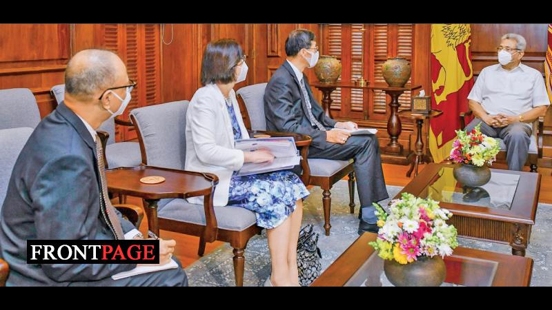 Several representatives of the International Monetary Fund (IMF) met President Gotabaya Rajapaksa at the Presidential Secretariat yesterday morning. The IMF delegation comprised Asia Pacific Department Director Dr. Changyong Rhee, Deputy Director Dr. Anne-Marie Gulde-Wolf and IMF Resident Representative for Sri Lanka and the Maldives Dr. Tubagus Feridhanusetyawan. Secretary to the President Gamini Senarath, Principal Advisor to the President Lalith Weeratunga and Additional Secretary Chandima Wickramasinghe were also present. Picture by President’s Media Division.