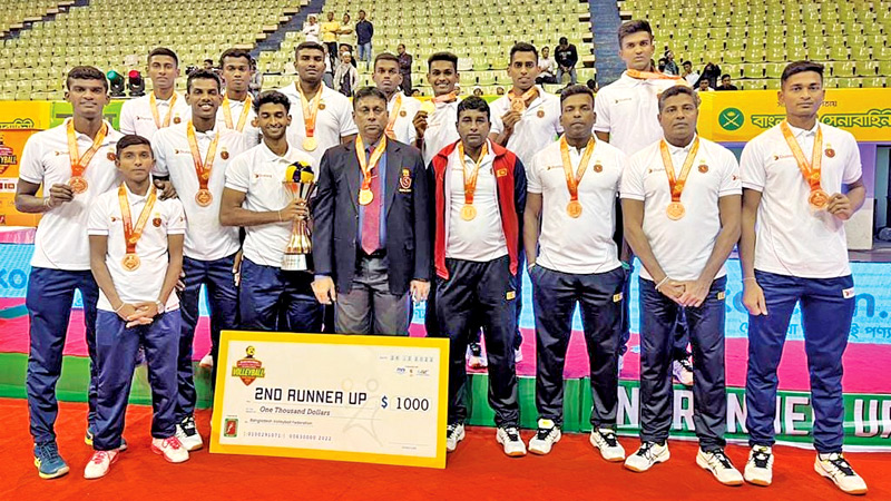 Sri Lanka secured the Bronze Medal at the 2022 Central Asian Volleyball Association (CAVA) Men’s Under-23 Volleyball Championship, which concluded at the Shaheed Suhrawardi National Indoor Stadium in Mirpur, Dhaka, Bangladesh on Monday.