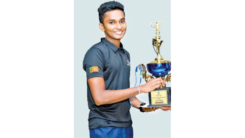 Ravindu continued his form beating two Englishmen and then Alex Smith from Ireland in straight sets in the quarter finals. In the semi final he had to overcome stiff opposition from Englishman Mike Harris who stretched Ravindu for a tight five setter. In the final Ravindu created a major upset to beat top seed James Peach from England in a closely contested four setter. Ravindu lost the first set and made a tough comeback saving game points to win the second set at 13/11.