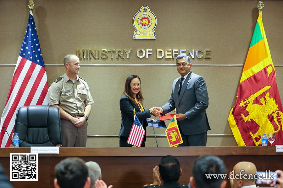 The agreement was signed at the Ministry of Defence by US Ambassador Julie Chung and Brigadier General Trenton Gibson on behalf of the United States, while Sri Lanka was represented by Defence Secretary Air Vice Marshal Sampath Thuyacontha (Retd).