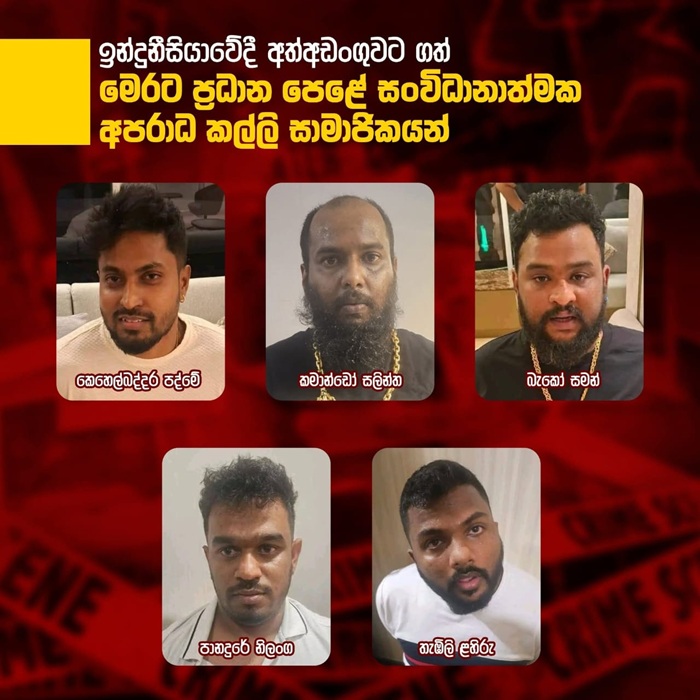 According to the government, the arrested underworld figures are Kehelbaddara Padme, Commando Salinda, Backhoe Saman, Panadura Nilanga, and Thembili Lahiru.