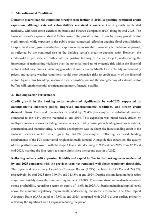Sri Lanka’s domestic macrofinancial conditions strengthened further in 2025, supporting continued credit expansion, though external vulnerabilities remained a concern, according to the Central Bank of Sri Lanka (CBSL).