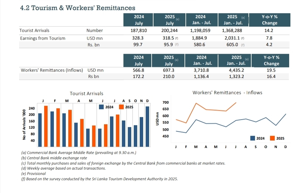 Sri Lanka received USD 697.3 million in worker remittances in July 2025, up from USD 635.7 million in June, according to the Central Bank of Sri Lanka.