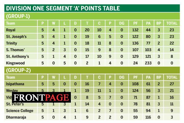 S. Thomas’ College had the satisfaction of concluding the league tournament with a smashing 36-8 triumph over Kingswood College at the Nittawela Stadium. After going through a tough early part of the season, the Thomians eventually made it two wins from their last two outings and managed to secure fourth place in Group-1.