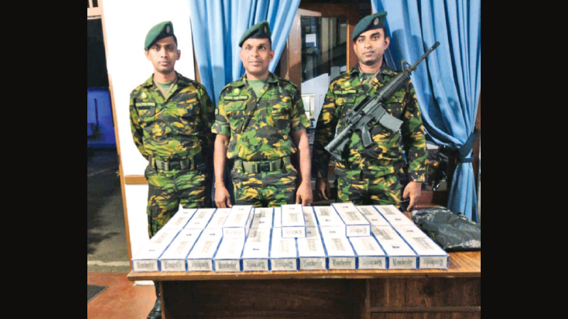 There, a 39-year-old resident of Meeraniya Street, Colombo 12, who was in possession of 5,000 illegal Manchester Lights cigarettes imported into Sri Lanka without paying the duty, was arrested, and he was handed over to the Maligawatta Police for further investigations.