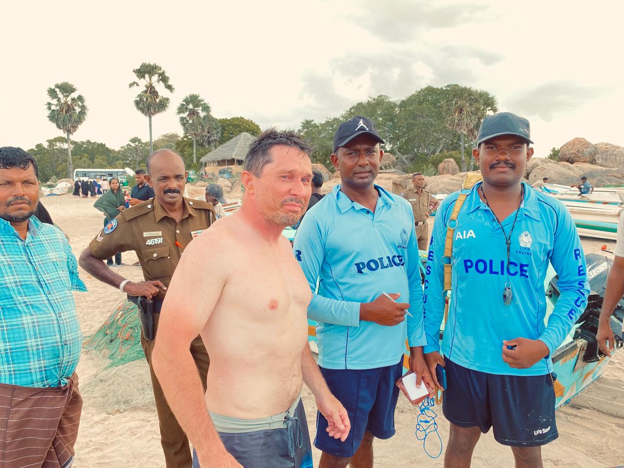 The foreigner, who was engaged in water sports, was dragged into a current but was saved by the Kottuhal Police Life Saving Unit. Officers identified as Sergeant Ruwan, Constable Tharindu, and Constable Kumar carried out the rescue. (Newswire)