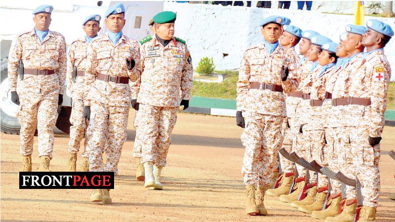 A symbolic presentation of National Flag, Sri Lanka Army Flag and the UN Flag to the Sri Lanka Army Medical Corps personnel leaving for the UN Peace Keeping Mission in Sudan took place at the Regimental Centre of the Sri Lanka Army Medical Corps in Werahera under the patronage of Chief of Defence Staff and Army Commander General Shavendra Silva yesterday. Picture by Ranjith Asanka.