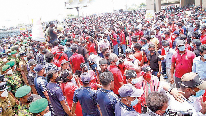He stated this addressing the anti-government rally  organized by the SYU in front of the Presidential Secretariat last morning. It was held following the protest march conducted from the Technical Junction to Colombo Fort.The SYU had organized this protest campaign against the present situation in the country and sale of national resources to foreign countries.During the rally, the protestors had attempted to hand over a letter to President Gotabaya Rajapaksa through the Secretary to President.
