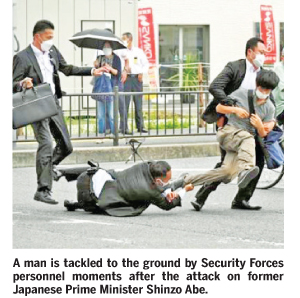 JAPAN: Bodyguards could have saved Shinzo Abe if they shielded him or removed him from the line of fire in the 2.5 seconds between a missed first shot and a second round of gunfire that fatally wounded him, according to eight security experts who reviewed footage of the former Japanese leader’s assassination.
