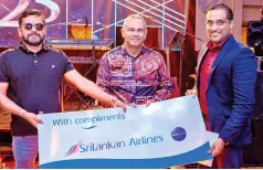Winner of the Grand Raffle draw is receiving his award from Chairman Grand Kandyan  Gamini Weeraratne and Sales Manager SriLankan Airlines Niroshan Bandara
