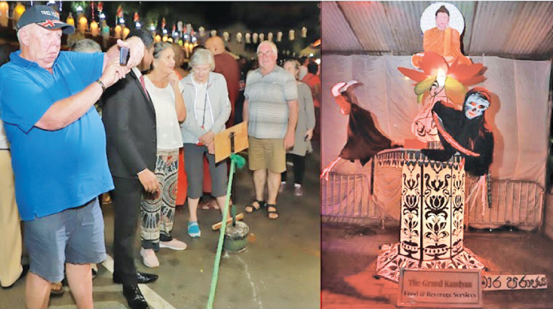 The Grand Kandyan Hotel for the second time organized “The Grand Kandyan Vesak Kalapaya ‘’ to honor the teachings of the Buddha. Vesak pandols, and Vesak lanterns made by the hotel staff were displayed. A “dansala” was also organised by the hotel. Many tourists and thousands of people gathered to relish the event. Some foreigners at the ‘The Grand Kandyan Vesak Kalapaya’