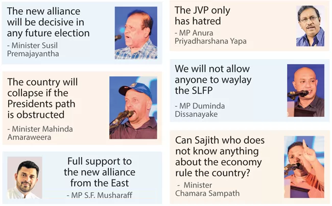 A noteworthy feature of this public rally held under the theme “For the victory of the country lets forge ahead in unity”, was the participation of 21 Members of Parliament (MP) representing various Parties. Also, 5 MPs currently abroad have informed they will join this alliance in the future.