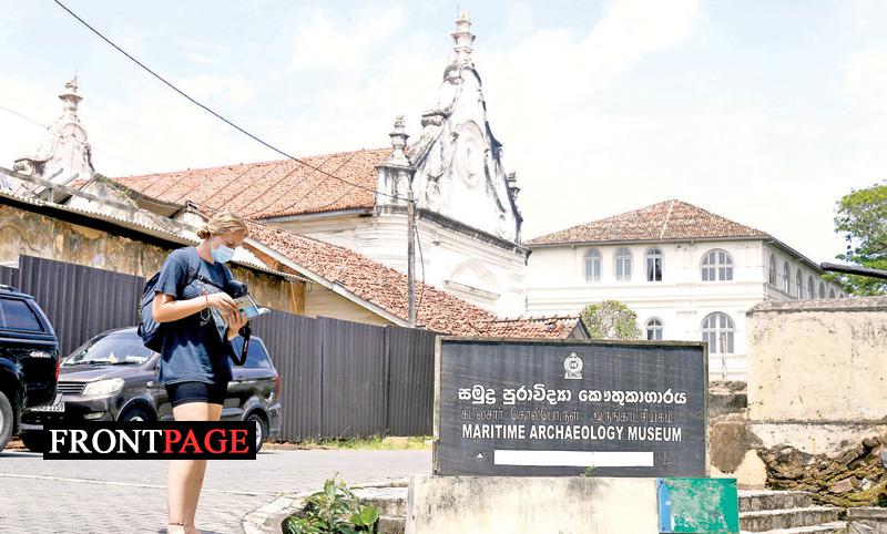 With the opening of Sri Lanka’s borders to vaccinated travellers and the resumption of most flights by international airlines, tourists are arriving in the country in greater numbers. Here a tourist checks a guidebook near the Maritime Museum in the historic Galle Fort. (Picture by Sulochana Gamage)