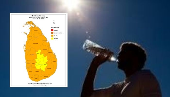 The Department of Meteorology has warned of heat levels affecting the human body in several areas on Tuesday (31), including parts of the Western, Sabaragamuwa, Southern, Eastern, North-Western, Northern and North-Central provinces, as well as the Monaragala District.