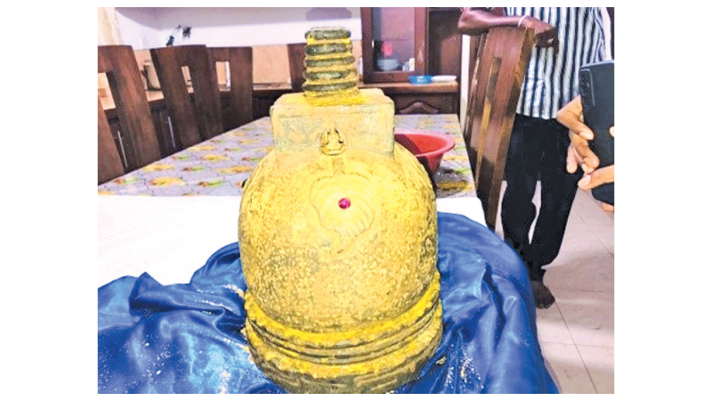 According to the information received by the officers of the Moratuwa Special Task Force Camp, a group of people are looking for buyers to sell an artifact, which is said to contain relics, this it was found while inspecting a house located in Yatagama Veyangoda Police Division.