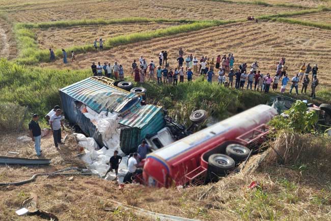 The crash occurred around 11 p.m. at the 41st-kilometer post. The lorry driver died at the scene, while the bowser’s assistant succumbed to injuries while being taken to hospital.