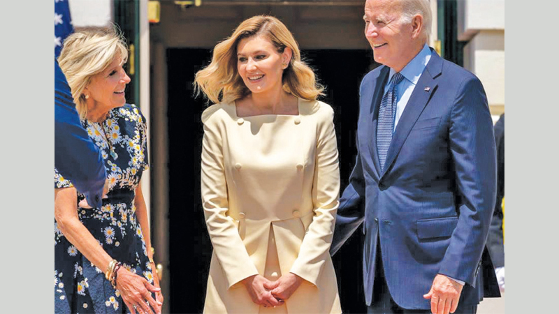 US President Joe Biden, who has said the United States will support Ukraine in its fight against Russia for “as long as it takes,” helped his wife welcome Zelenska, the wife of President Volodymyr Zelenskyy, as her black SUV rolled to a stop on the driveway. He gave her a bouquet that included sunflowers, Ukraine’s national flower.