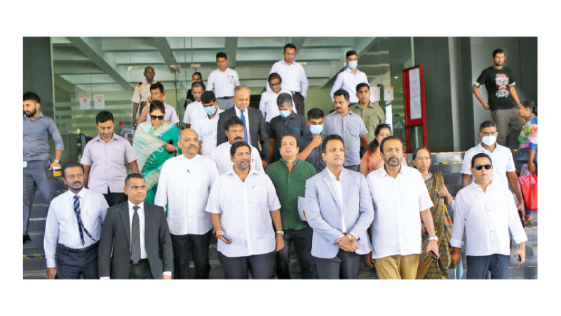 UNP National Organizer Sagala Rathnayake, UNP Deputy Leader Ruwan Wijewardene, General Secretary Palitha Range Bandara, Mayoress of Colombo Municipal Council Rosy Senanayake and others at the District Secretariat of Colombo. Picture by Rukmal Gamage