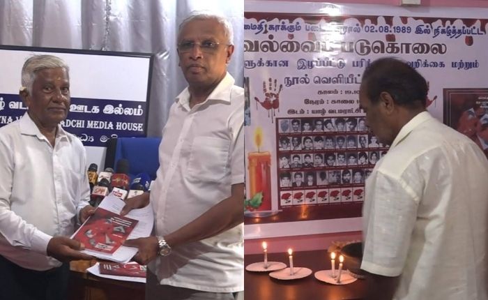 The formal submission was announced at a press conference held Sunday (Oct. 19) at the Vadamarachchi Press Club in Jaffna. Survivors and families of the victims gathered to light lamps and lay floral tributes in memory of those killed.