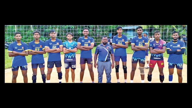 Kalutara District Zonal Open Volleyball Tournament organized by Young Stars Sports Club of Elle Kanda, Horana was won by Vidyarathana University College, Horana and the team posed for a photograph after clinching the Trophy with their coach. Sudarshana. Standing L/R – Meemitha Dayan, Thusith Tharanga, Dinuka Dilshan, Sithum Abhishek, Chamod Isuru, Mr. Sudarshana (Coach), Kemin, Nimsara, Yasith Chanaka (Picture by Dilwin Mendis, Moratuwa Sports Special Correspondent)