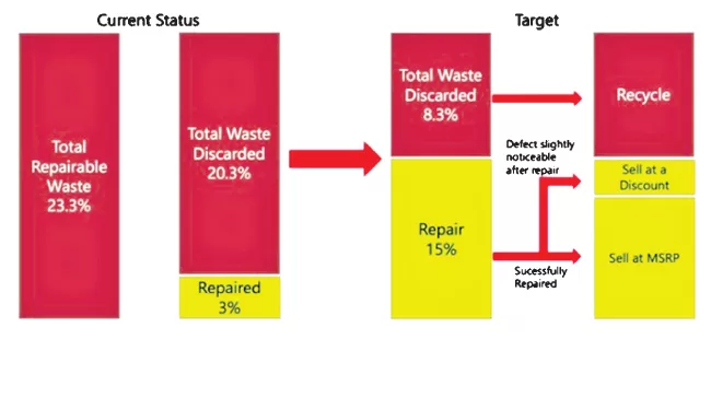 If at least 10-15% of (23.3% of repairable waste) this quantity can be transformed into finished products and then repaired to export standard, manufacturers could achieve significant cost savings, possibly reaching millions.