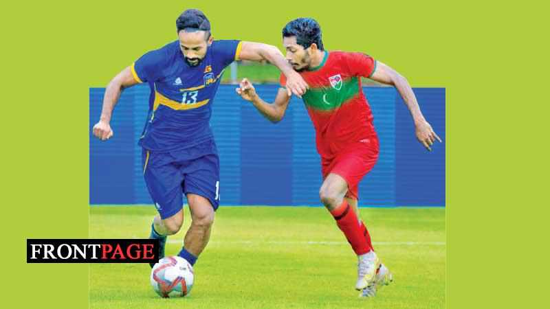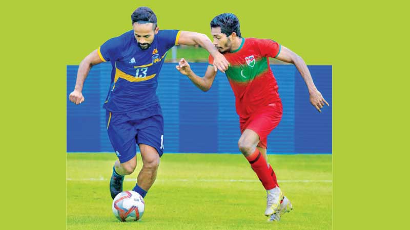 Striker Akram Abdul Ghanee broke the shackles in the seventh minute with a spectacular goal, and Ali Fasir scored the second goal within two minutes to take control of the game. Lankan strikers Dillon de Silva and Wazeem Razik made valiant efforts, but their goals were foiled by the rival defenders. Ibrahim Mahudhee Hussain scored the third goal for the visitors to give them a healthy lead of 3-0 at the short whistle.