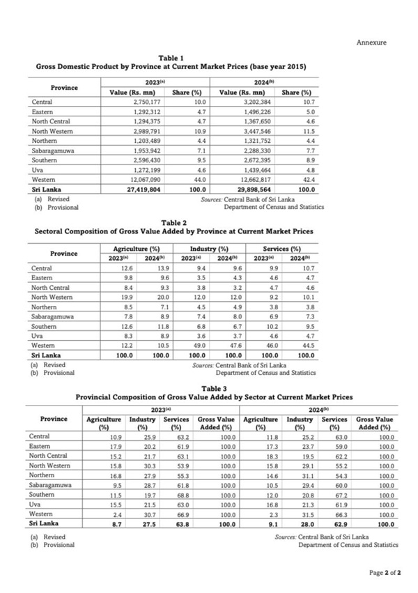 Contributions from the Central, Eastern, North Western, Sabaragamuwa, and Uva provinces also increased compared with 2023, reflecting a broader distribution of economic activity across the country.