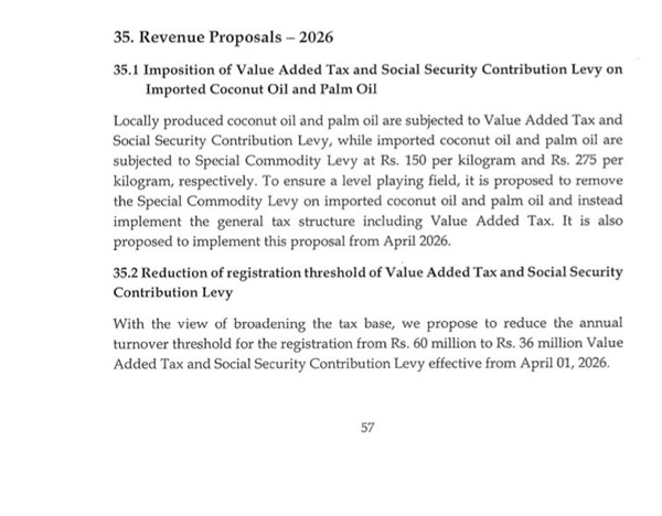 It has been proposed to remove the Special Commodity Levy on imported coconut oil and palm oil, and instead implement the general tax structure, including Value Added Tax (VAT), Effective from April 2026.