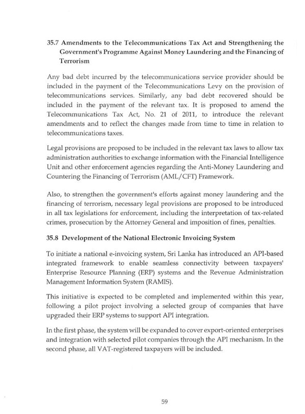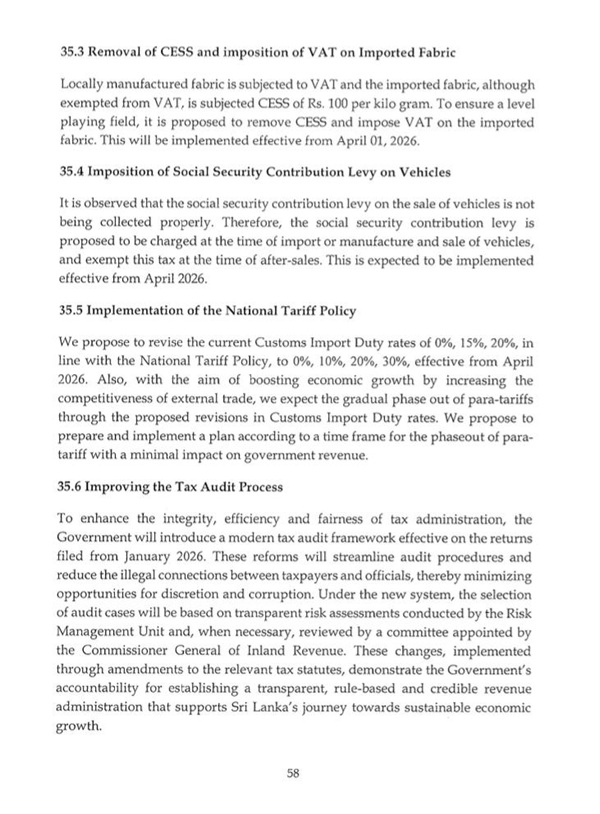 Addressing the Parliament today, President Anura Kumara Dissanayake outlined the following revenue proposals;