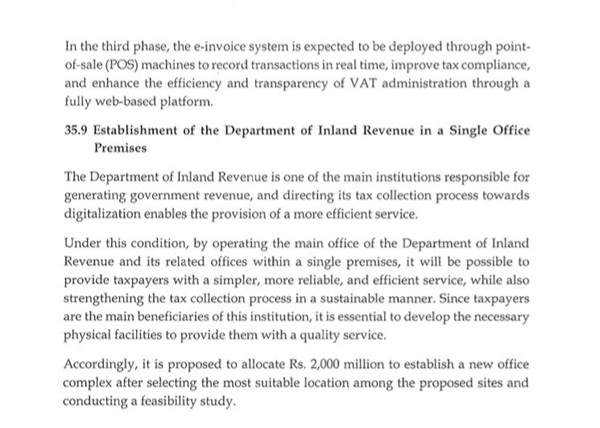 It has been proposed to allocate Rs. 2000 million to establish a new office complex after selecting a suitable location and conducting a feasibility study. (Newswire)