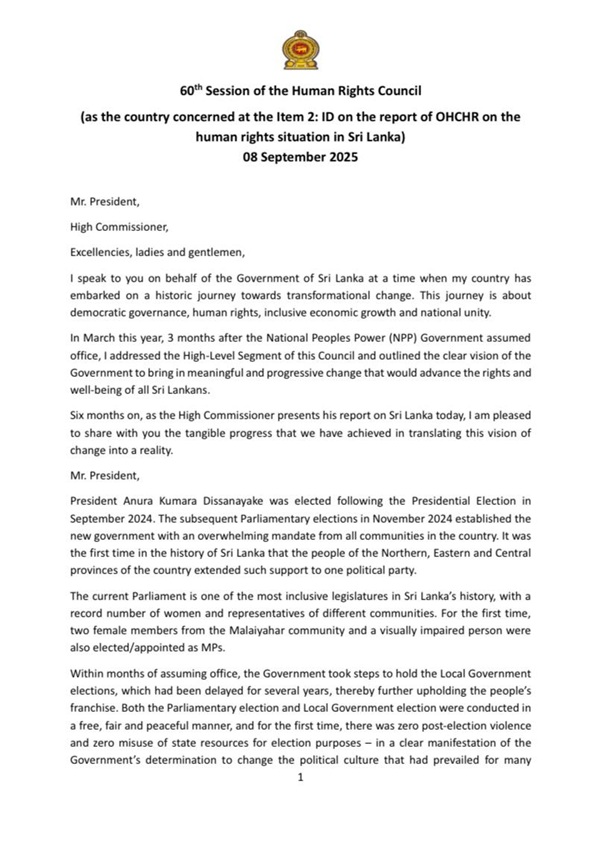 “The Government’s commitment to advancing reconciliation, human rights and the well-being of all Sri Lankans has been clearly outlined by the President on several occasions and also during my interaction with this Council.