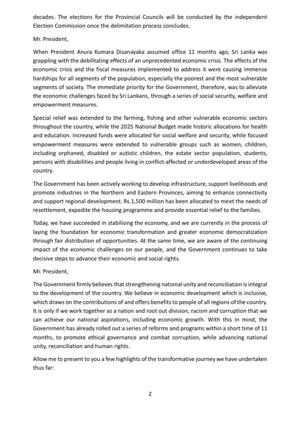 “As President Disanayaka has reiterated, we are firmly and genuinely committed to working towards a country that respects and celebrates the diversity of its people with no division or discrimination, and we are resolved not to leave room for a resurgence of racism or extremism. We are also committed to ensuring that any person alleged to have committed any unlawful act is investigated, prosecuted and brought before courts through an independent national process, irrespective of their social status, background or any other ground.