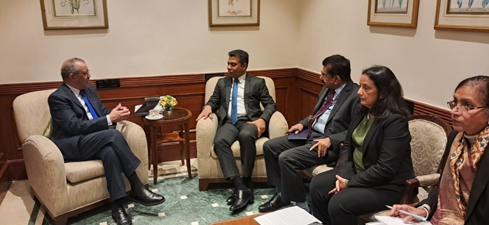 Joining the meeting were Health Ministry Secretary Dr. Anil Jasinghe, WHO South‑East Asia Regional Director Dr. Razia Pendse, and other delegates.