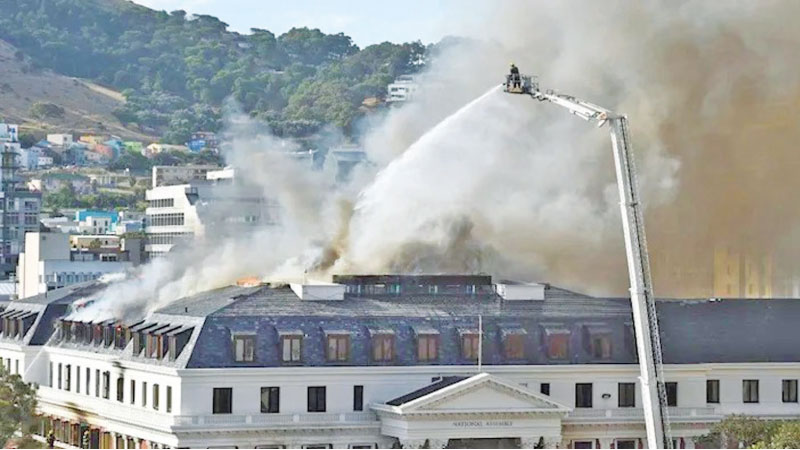 SOUTH AFRICA: A fire engulfing South Africa’s Parliament continued to rage as night fell on Cape Town on Monday, after strong winds reignited the blaze that firefighters had declared under control just hours earlier.