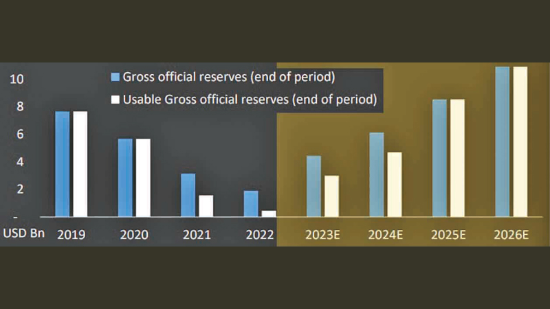 With the IMF approval on Sri Lanka, the country’s Gross official reserves are expected to rise to USD 4 billion in 2023 and to USD 11 billion by 2025 say NDB Securities in their Sri Lanka’s IMF EFF report.