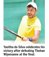Yasitha de Silva once again produced his power play when he defeated defending champion Thehan Wijemanne with hard fought three setter game to clinch men’s championship at the Colombo Tennis Championships which is now in progress at SLTA courts.