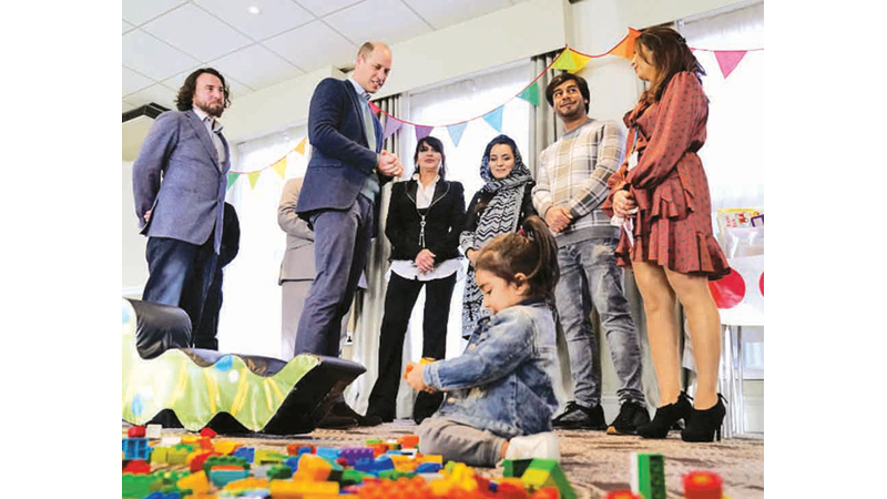 The Prince visited families housed in a hotel for refugees evacuated from Kabul this year.