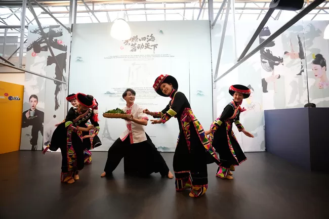 Tuocha from Xiaguan, a variety of Pu’er tea noted for its history associated with ancient Chinese caravans, has a fragrance that becomes stronger as it ages; black tea from Changning, a lightly fermented tea made of tender leaves of ancient tea trees, allows one, with only a little sip of it, to feel an aura of the dense mountain forests… With the advent of the fifth International Tea Day,the 2024 “Making Yunnan Tea Known Around the World”: Promotion of Chinese (Yunnan) Tea Culture in Europewas debuted in Paris, France, on May 21 local time. The amber-colored cups of Yunnan tea, the captivating ethnic dances, and the hand-picked items of intangible cultural heritage allowed the participants to perceive Chinese culture and experience a unique “Yunnan Life” through their senses – sight, sound, smell, taste, and touch.