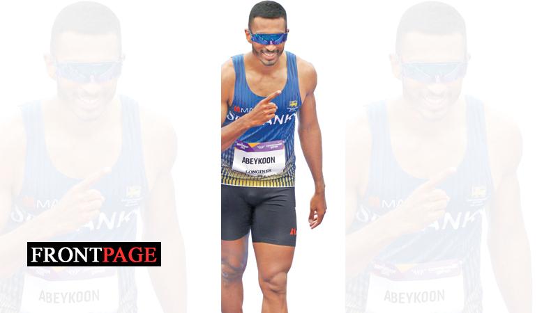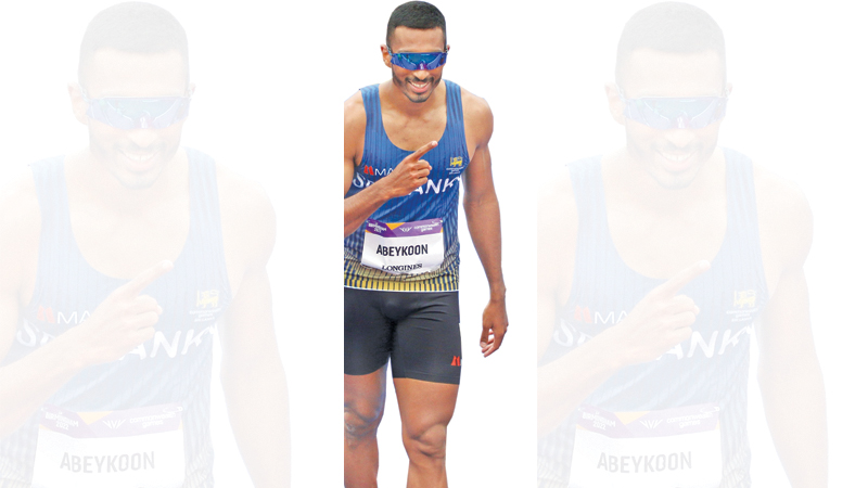 Abeykoon running from lane seven clocked 10.20 seconds in the third semifinal to qualify for the blue riband event at the XXI Commonwealth Games in the Alexander Stadium last night.