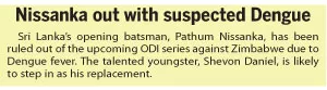 “Captaincy is nothing new for me and it’s not any pressure for me, but I was not in good touch during the last World Cup and want to come back strongly. We know Zimbabwe is a good team, but we played recently against most of the players and hope to give a good challenge this time. We never underestimate any opponent while making plans to win the game,” added Mendis.